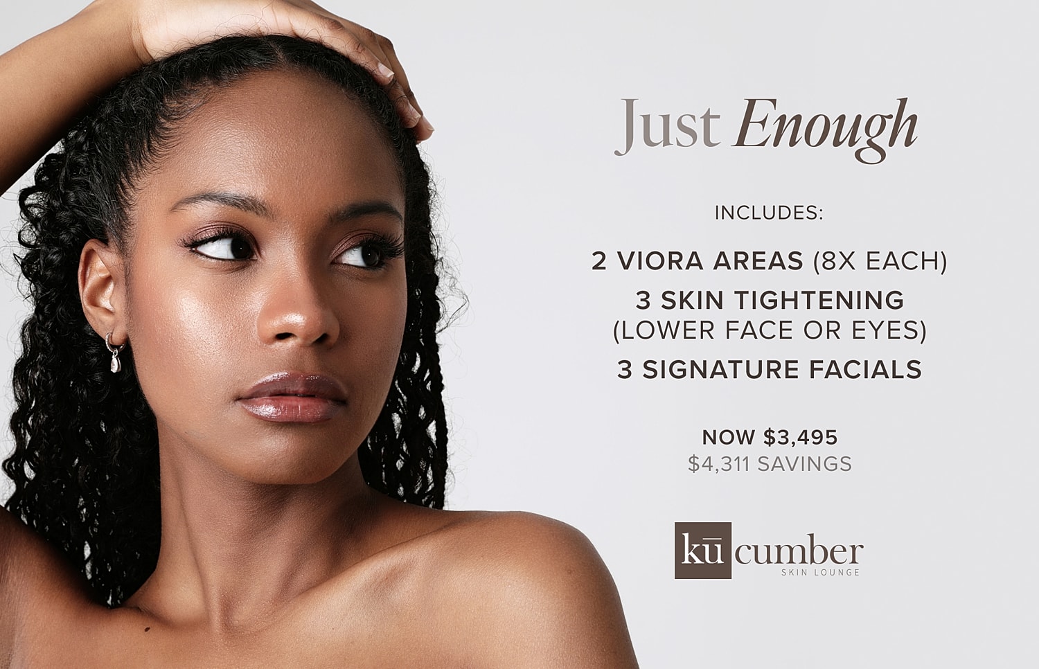 ACTUAL RESULTS MAY VARY. OFFER VALID THROUGH DECEMBER 31, 2025. MAY NOT COMBINE OFFERS. OTHER RESTRICTIONS MAY APPLY; SEE STORE FOR DETAILS. CANCELLATION POLICY: 24-hour advanced notice is required to avoid cancellation fee. © 2025 Kucumber Skin Lounge. All rights reserved. [10/01]